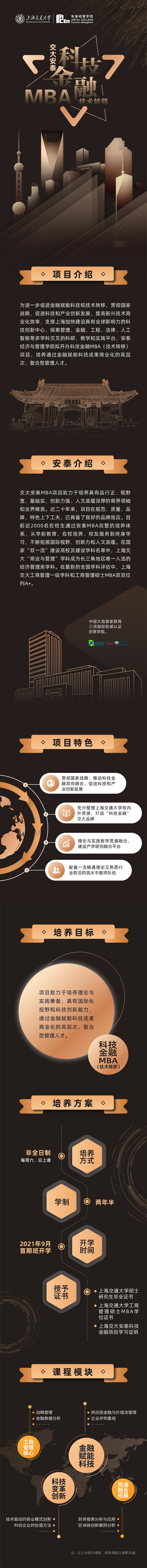 2021年,上海交通大学及安泰经济与管理学院再度重磅创新,探索多方合作的发展模式,探索建立科技金融生态联盟圈,探索管理、金融、工程、法律、人工智能等多学科交叉的科研、教学和实践平台,安泰经济与管理学院拟于2021年起开办科技金融MBA(技术转移)项目。